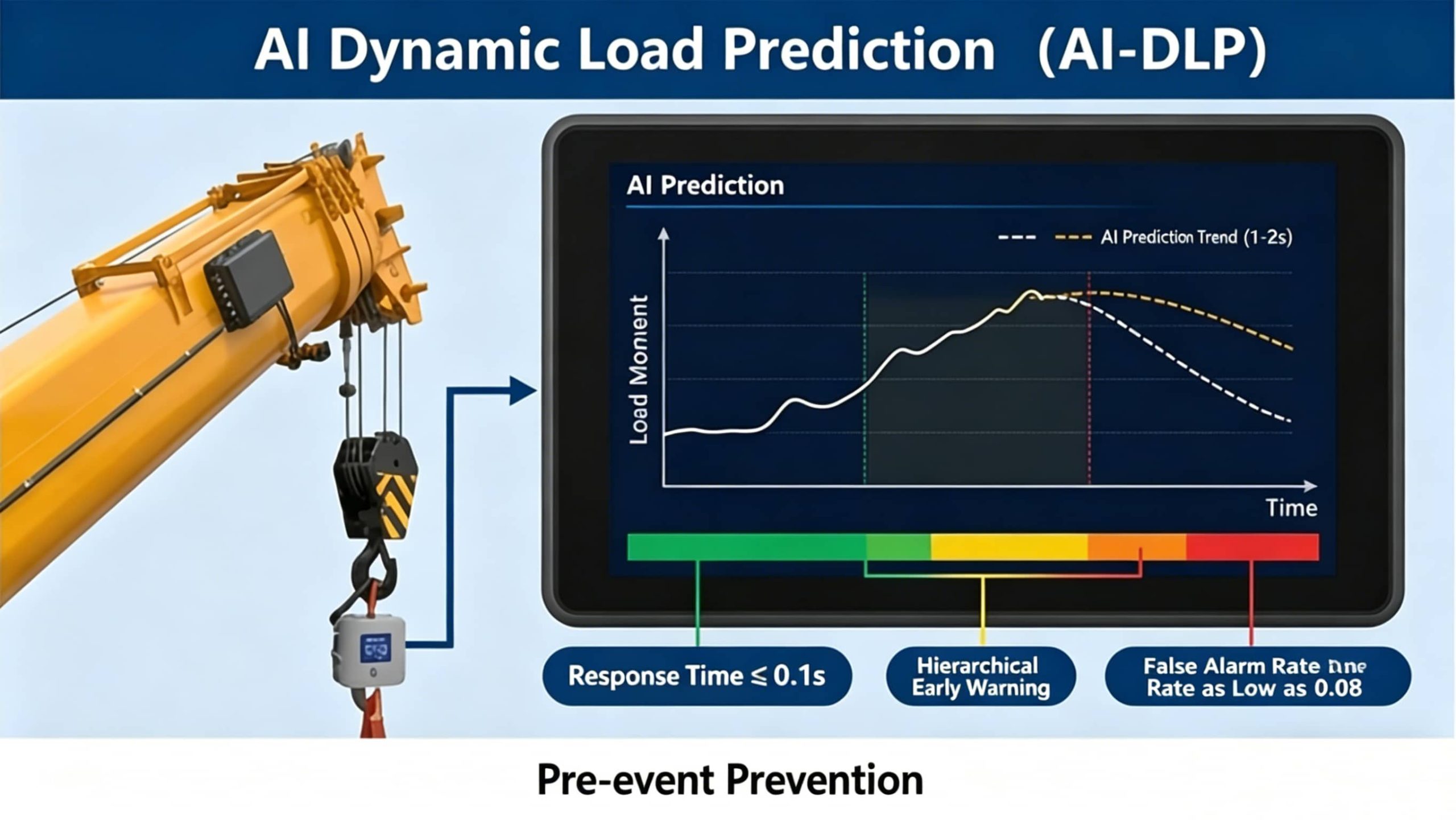 En primer lugar, la tecnología de predicción de carga dinámica de IA. Mediante un modelo de aprendizaje profundo, predice las tendencias de cambio del momento de carga en 1-2 segundos, con un tiempo de respuesta ≤0,1 segundos, activando alertas tempranas por niveles con antelación, pasando de "alarmas posteriores al evento" a "prevención previa al evento", con una tasa de falsas alarmas tan baja como 0,08 (referencia de pruebas autorizadas de MDPI).