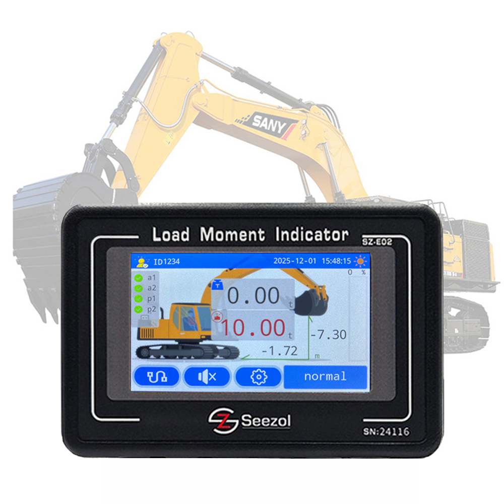 excavator load indicator, Also called excavator load moment indicator(LMI), excavator safe load indicator(SLI). an reflect the height, amplitude, weight, overload and other information on the monitor in real time through the human-computer interaction interface and various sensors, so that the excavator can be effectively used by the operator in a safe range. When the excavator exceeds the allowable safety range, the system will issue an alarm to remind the operator. Suitable for excavators, grabbers, loaders and other equipment.
