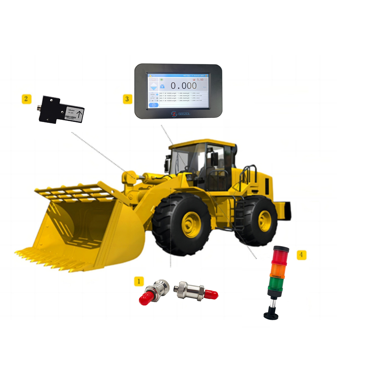 The working principle of this system is to measure the weight data during loading through the sensor installed on the loader. These data are transmitted to the weighing display controller in the cab through the data acquisition conversion transmitter; the controller processes and analyzes the data and calculates the real-time weight. If the weight exceeds the preset value, the instrument will alarm to prompt the operator.